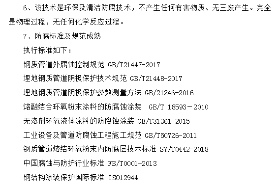 技術簡介:內外面每面熱熔結環氧FBE層,其中與土壤接觸一側的FBE層的厚度不小于400um,另一側的厚度不小于350um。另外,設置服役年限不小于75年的陰極保護裝置,以防止運輸及施工過程中撞傷部位形成局部腐蝕或點腐蝕。